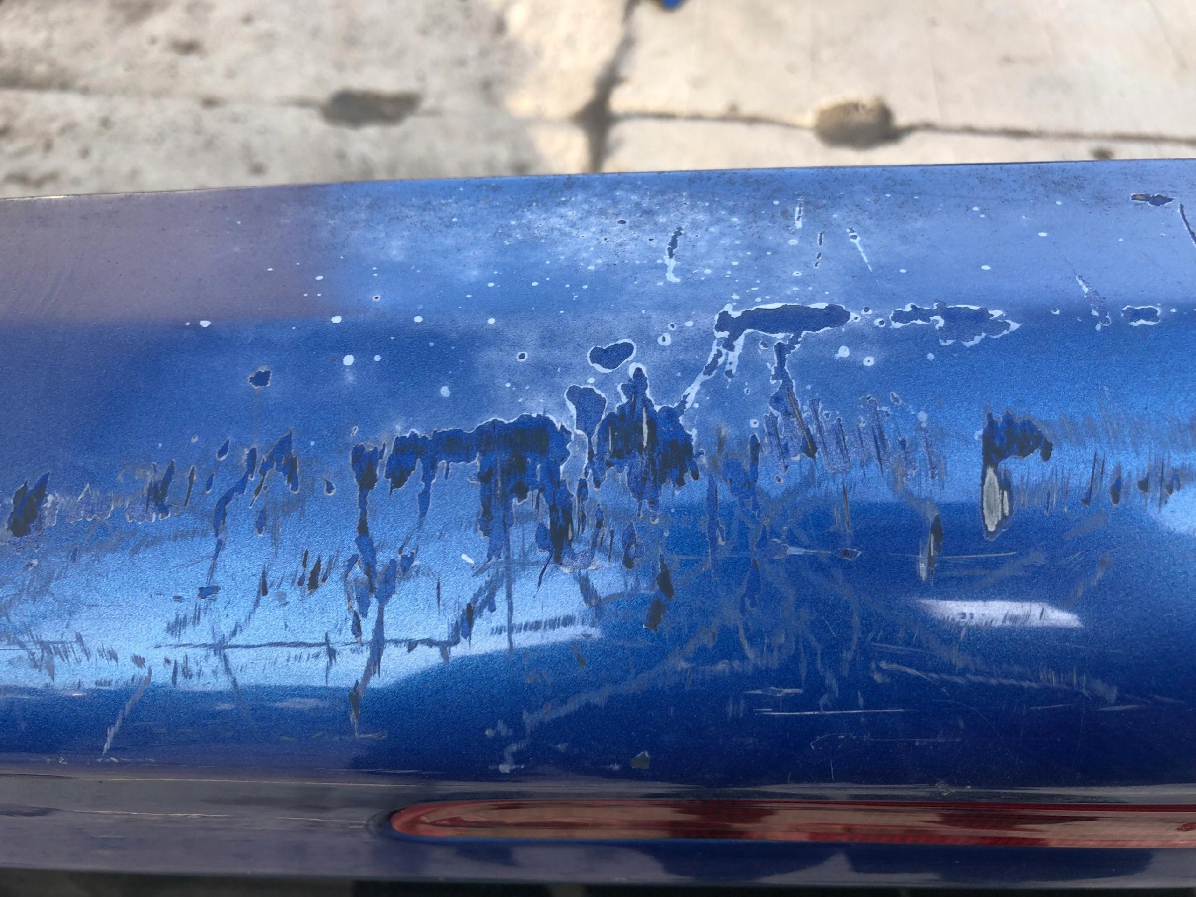 Stan: Jak na zdjęciach. Występują liczne zarysowania, wgniecenia. Złamana blenda.