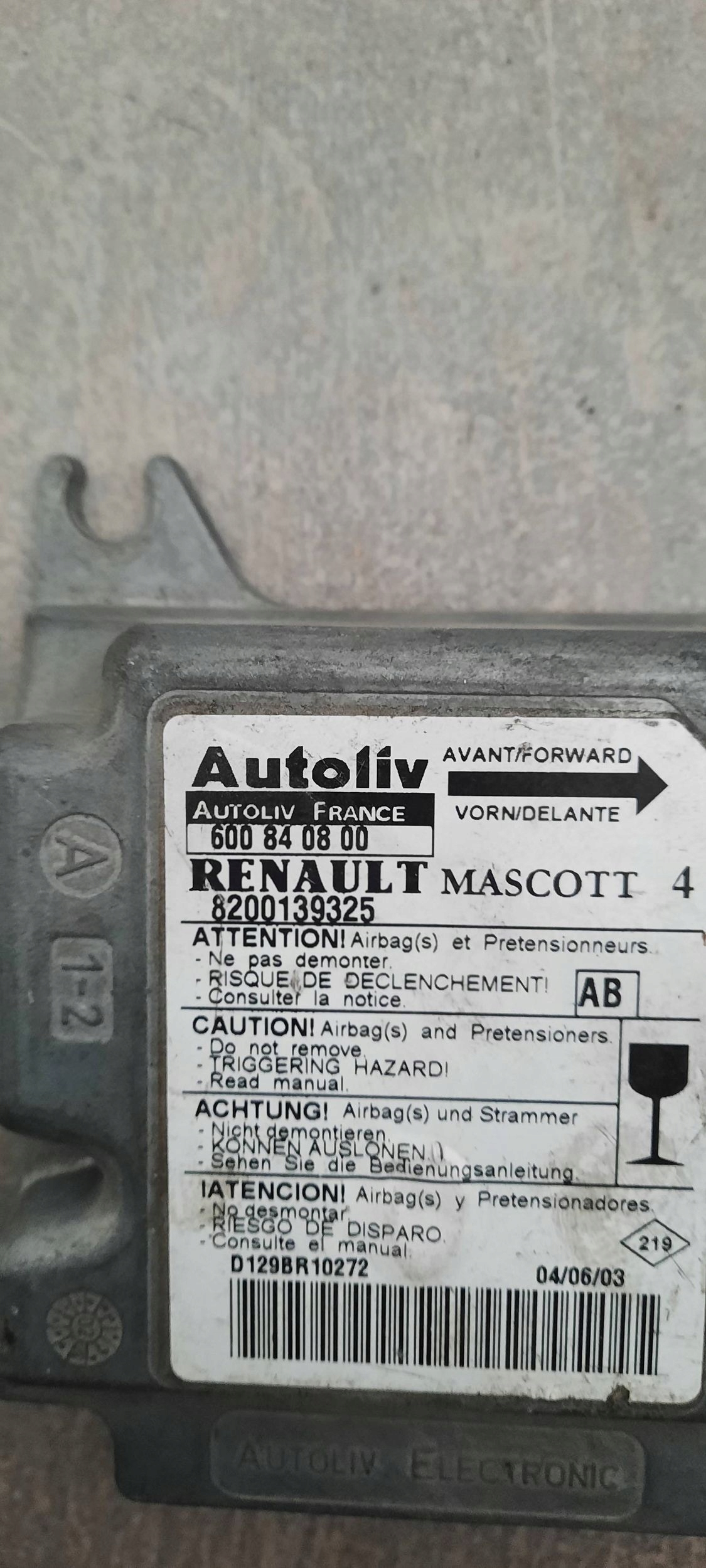 MODUŁ STEROWNIK AIRBAG RENAULT MASTER 8200139325
