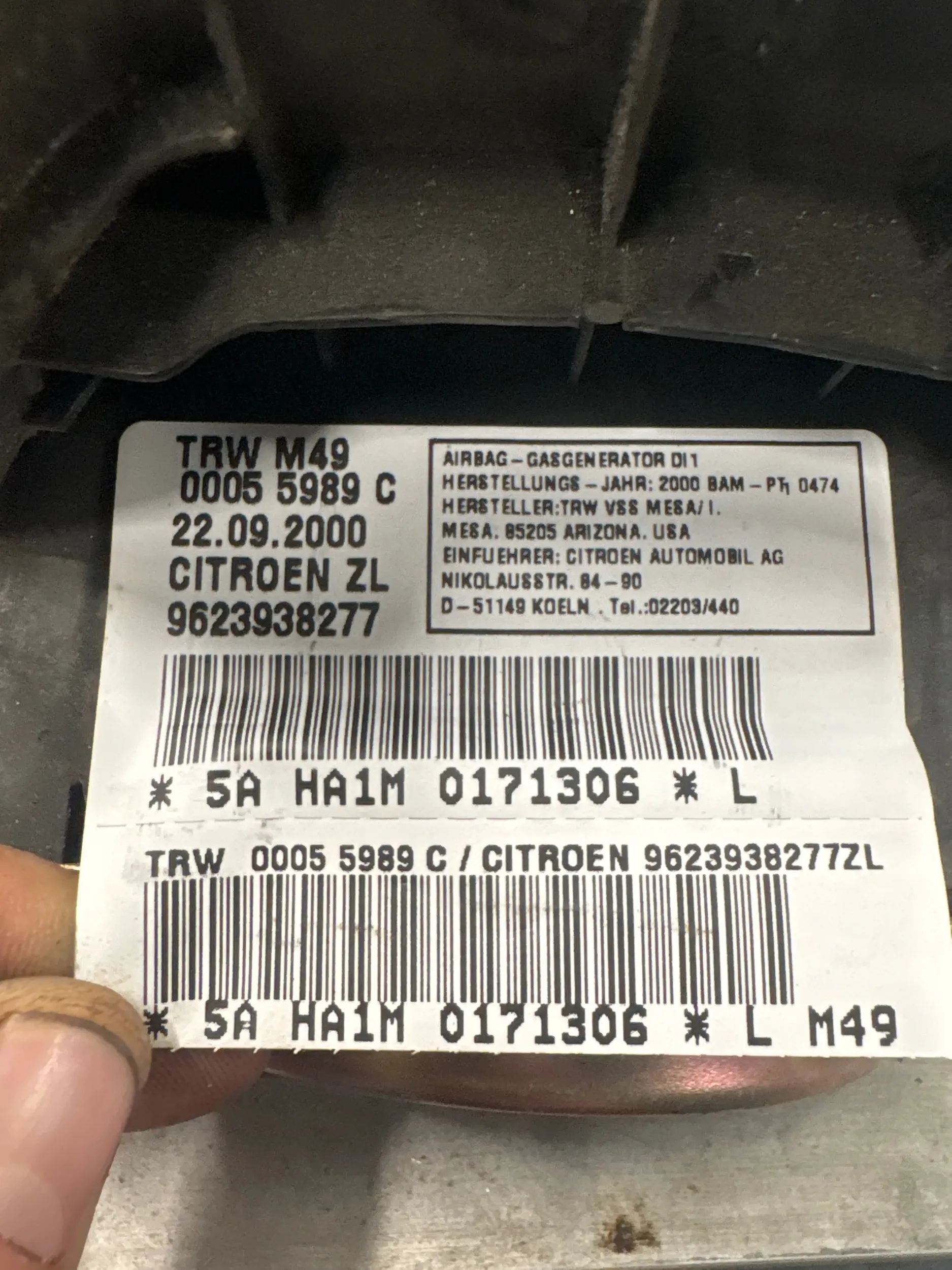 PODUSZKA POWIETRZNA KIEROWCY CITROEN BERLINGO 9623938277