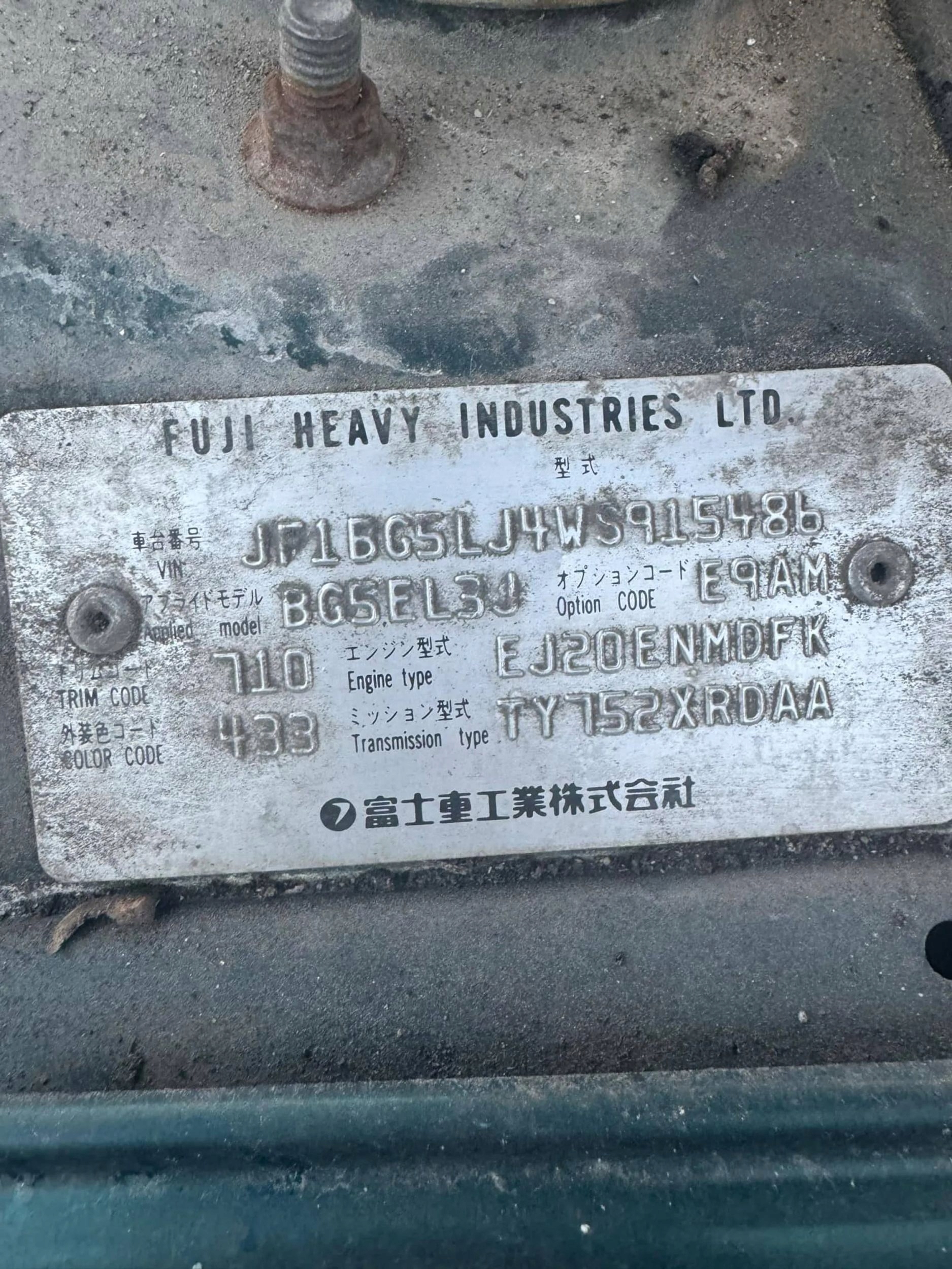 SILNIK SUBARU LEGACY 2.0B 116KM EJ20ENMDFK 4X4