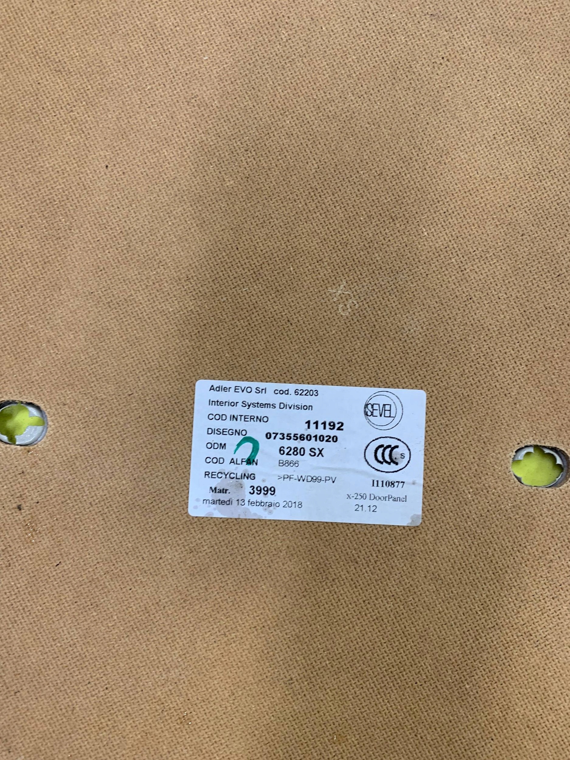 TAPICERKA DRZWI LEWY PRZÓD DUCATO BOXER JUMPER 2.0 HDI EURO